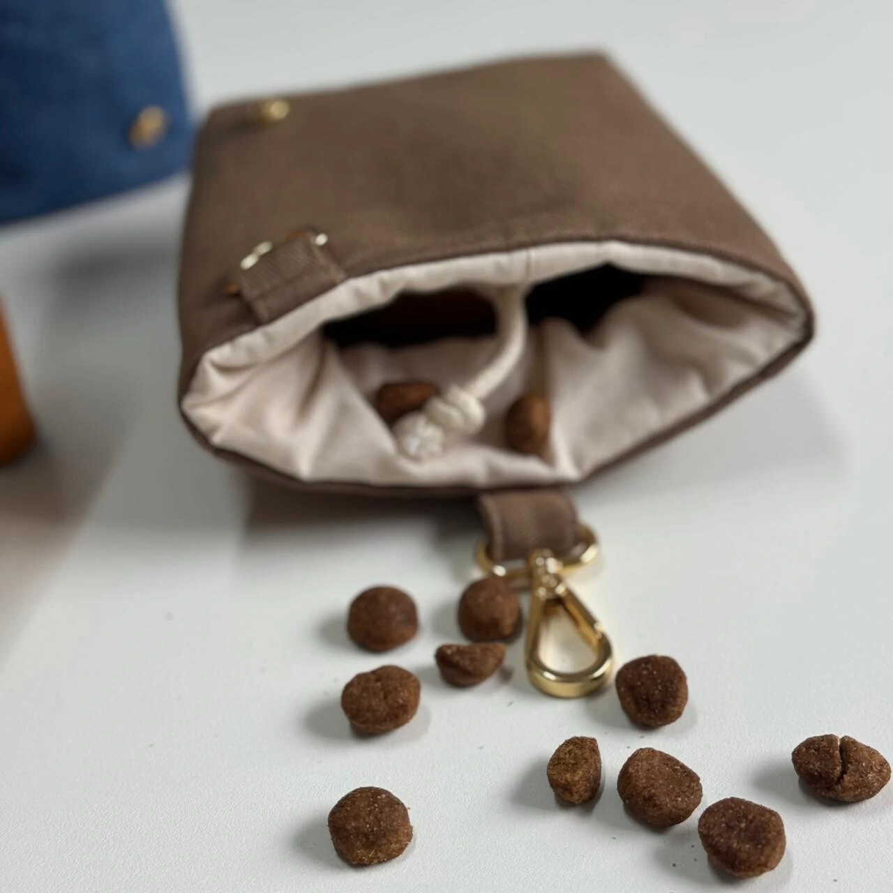 Uma bolsinha compacta, desenhada por nós para facilitar os treinos com seu pet. Nela você coloca os petiscos e tem fácil acesso para pegar durante os passeios e treinos com seu dog.