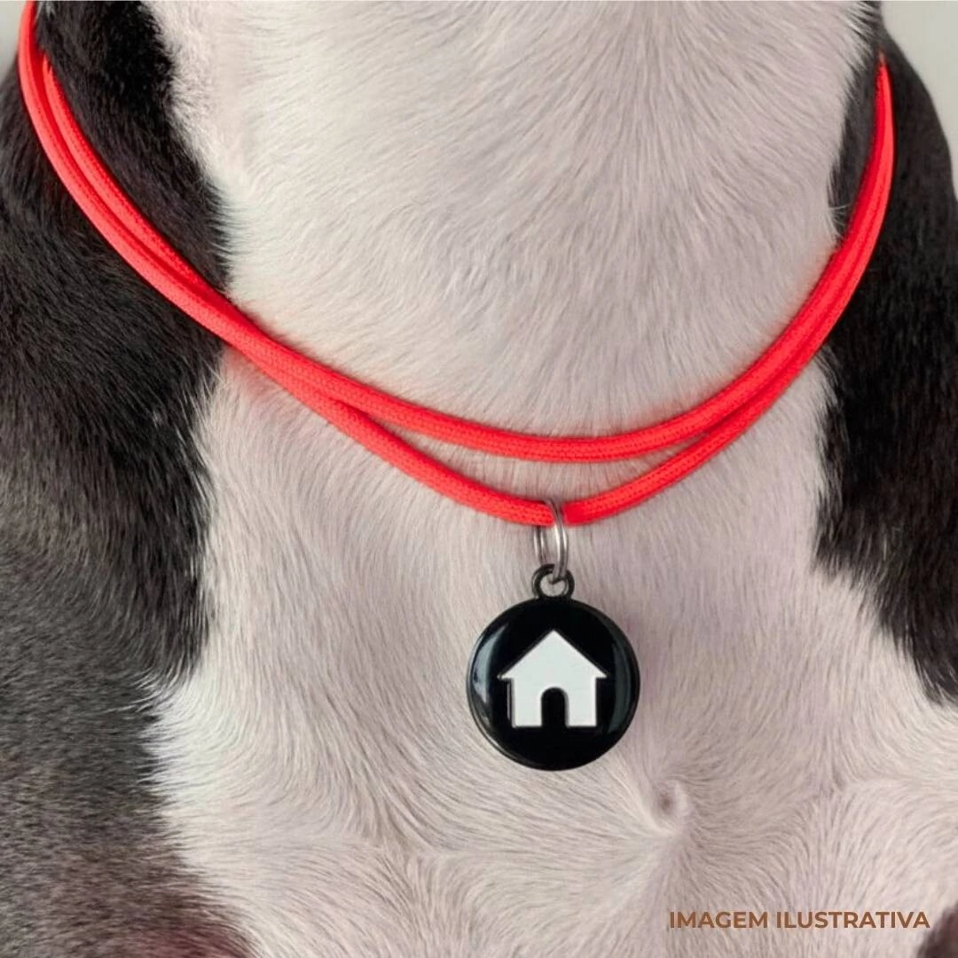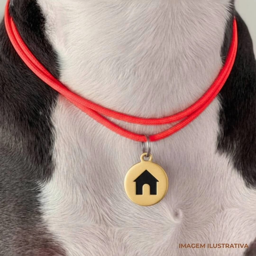De um lado vem gravado a casinha do nosso logo para preservar o pet durante passeios, fotos, etc.