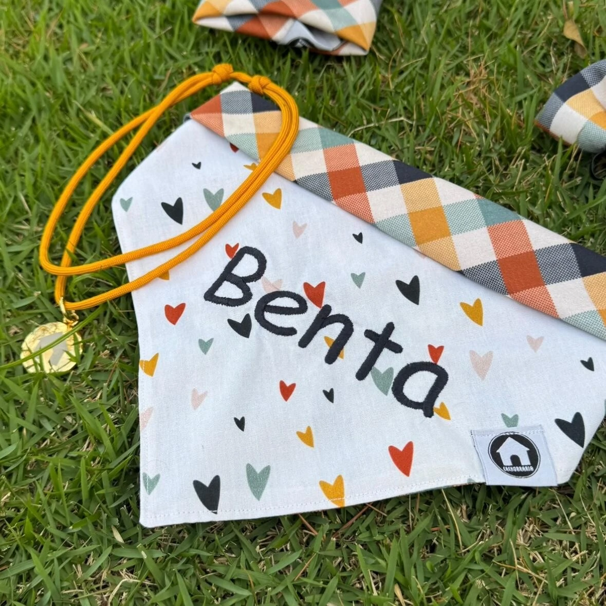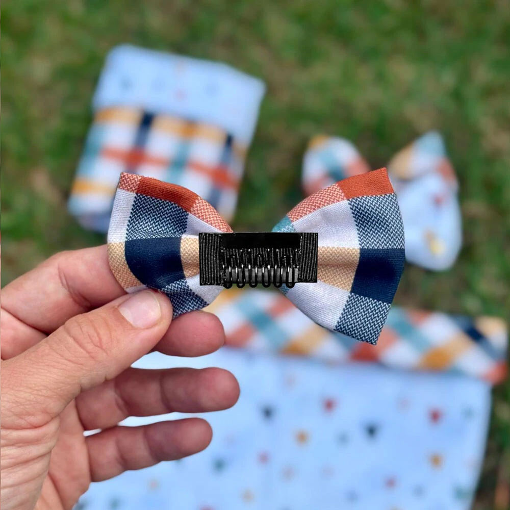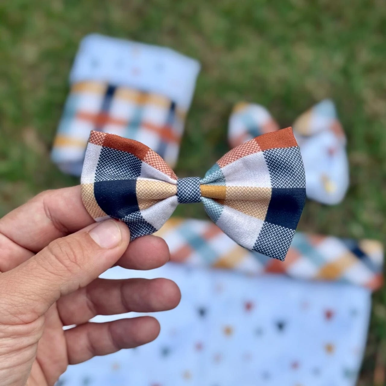 - Estampa frente da bandana - Xadrez em tons de azul e terra