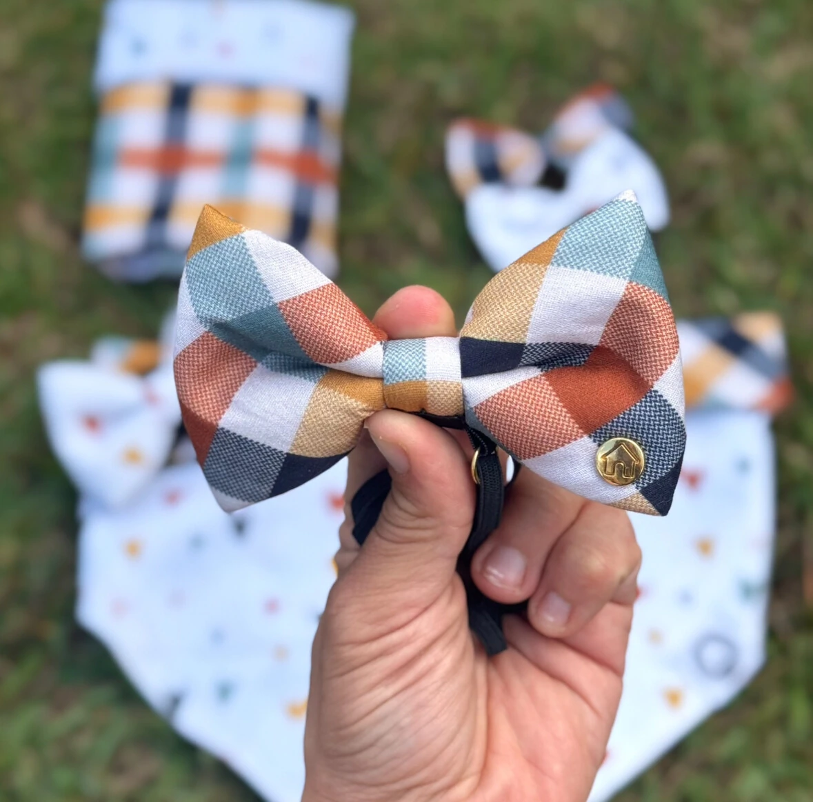 - Estampa frente da bandana - Xadrez em tons de azul e terra