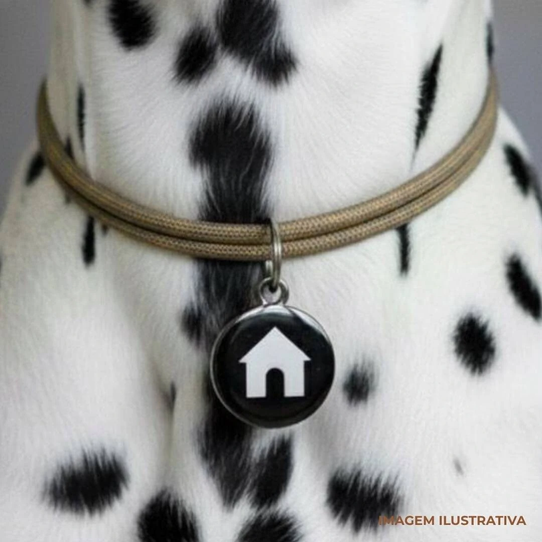 De um lado vem gravado a casinha do nosso logo para preservar o pet durante passeios, fotos, etc.