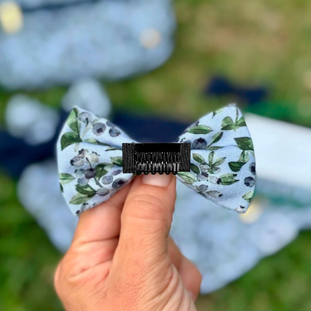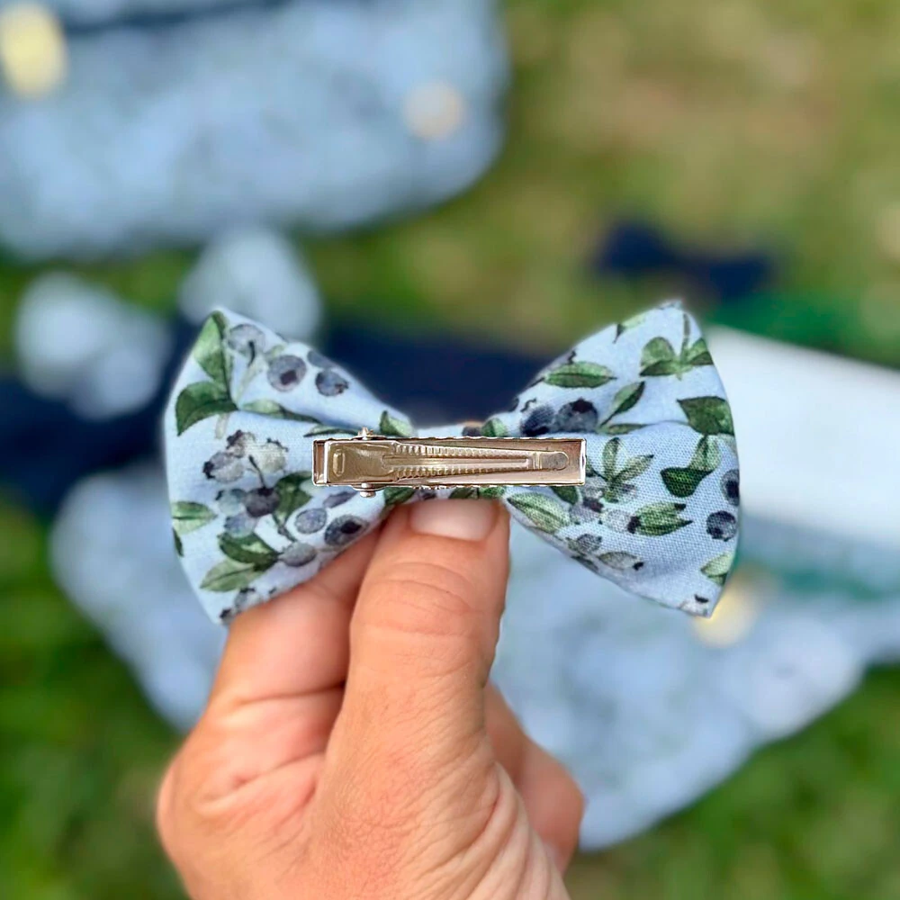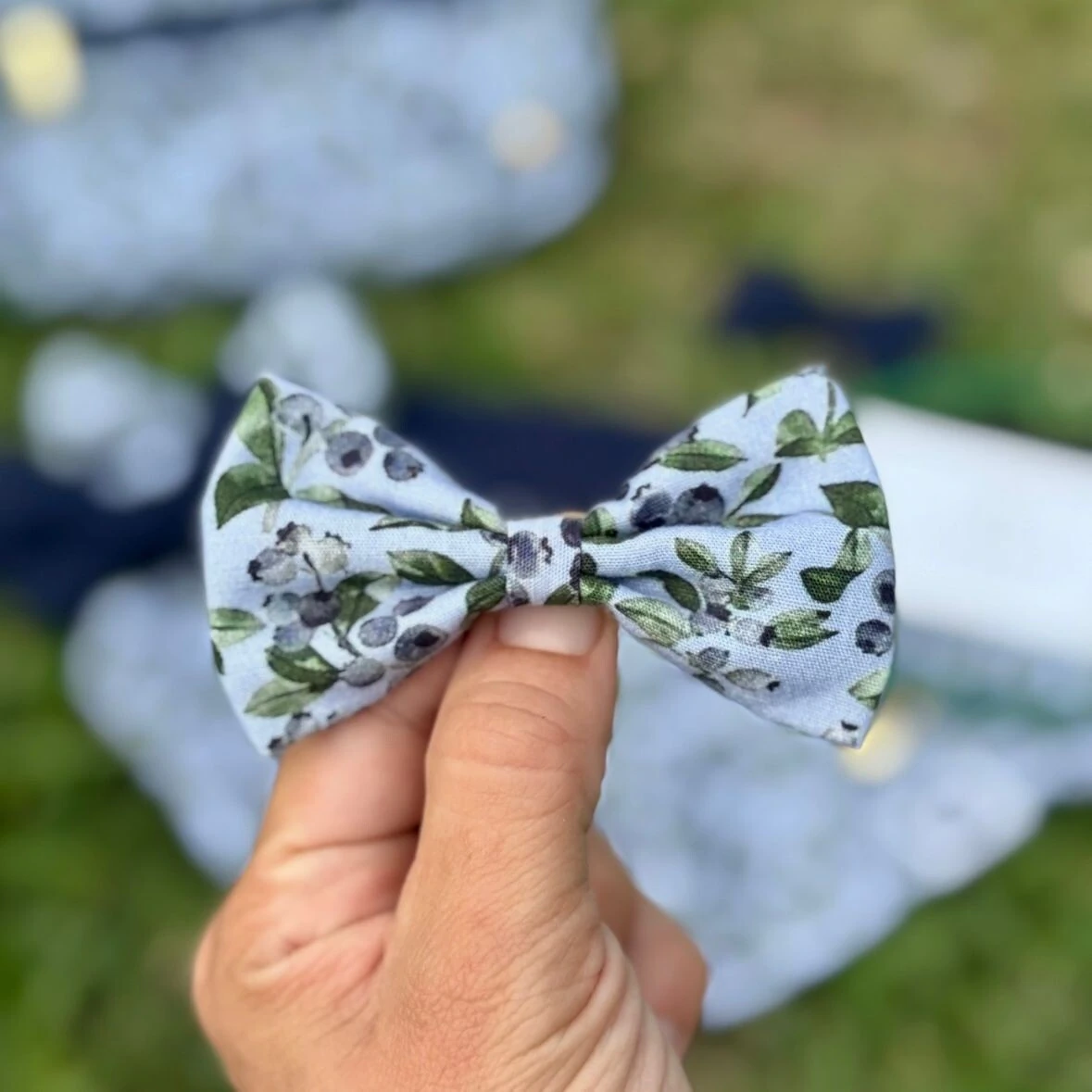 - Estampa frente da bandana - mirtilos num fundo azul celeste