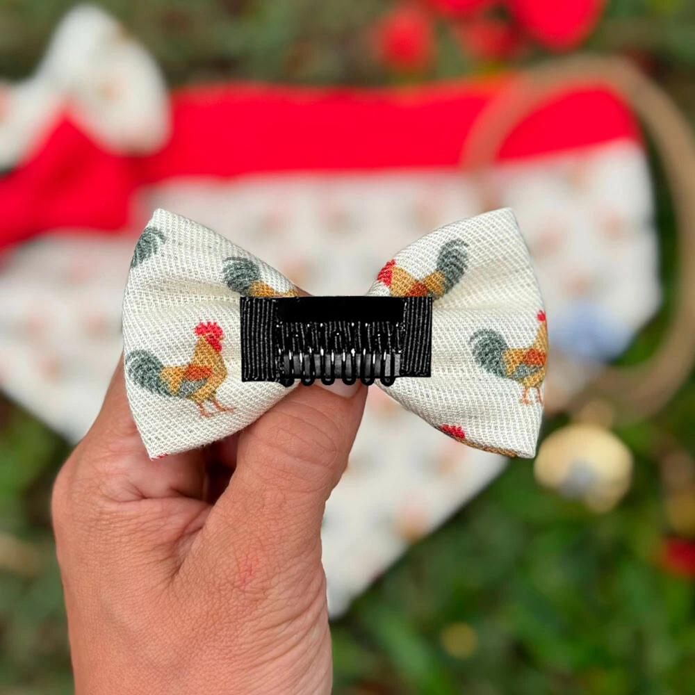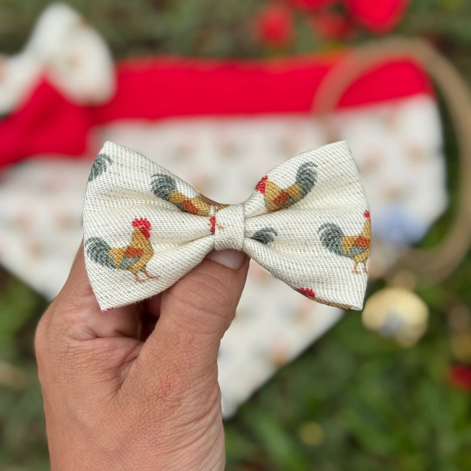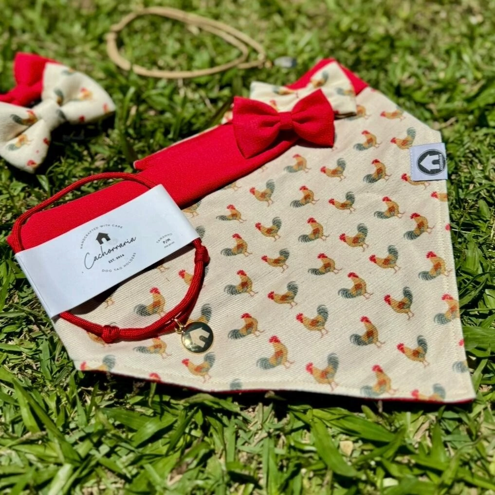 - Estampa frente da bandana - nosso galo do rancho com fundo off em linho