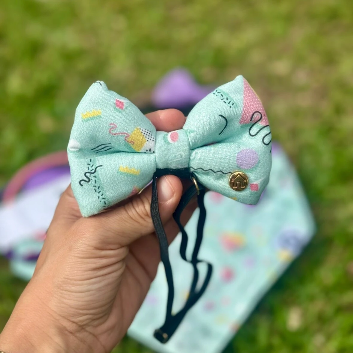 - Estampa frente da bandana - elementos abstratos e geométricos com fundo verde água