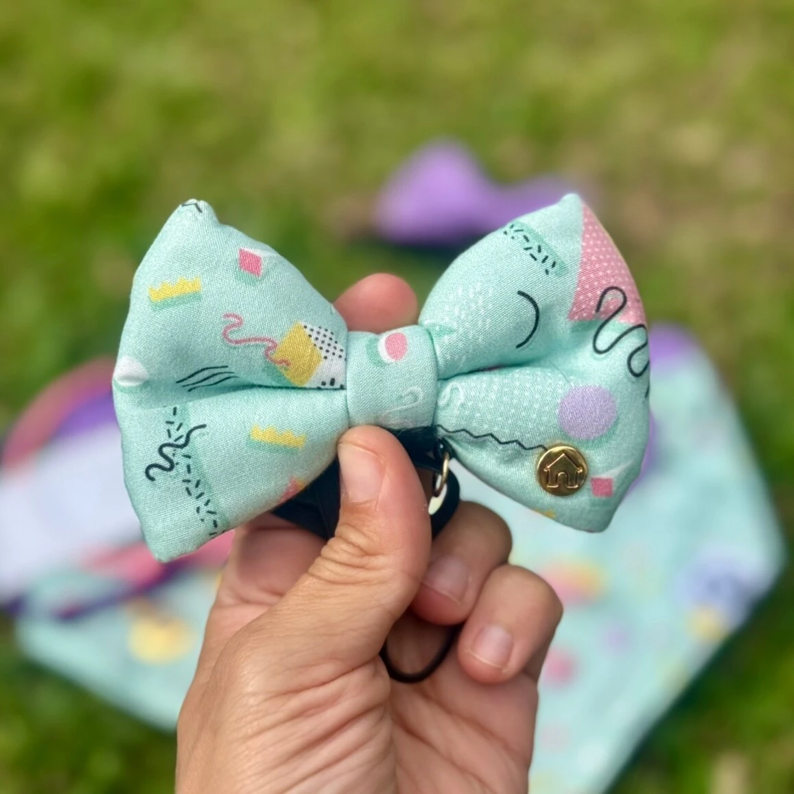 - As gravatas possuem regulagem no elástico para ajuste de acordo com o tamanho ideal para o pet.