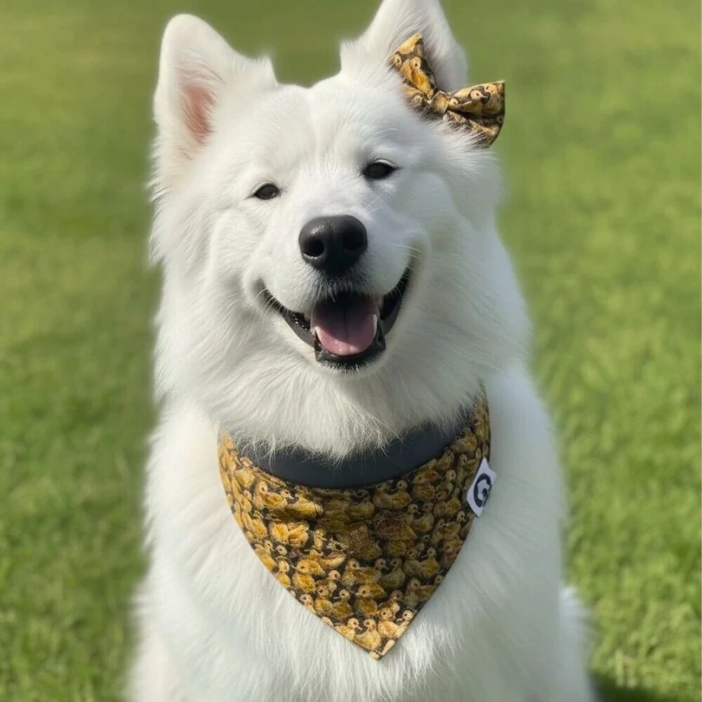 - Para seu pet acostumar com acessórios você pode criar uma associação positiva, colocando na hora do passeio ou do papá.